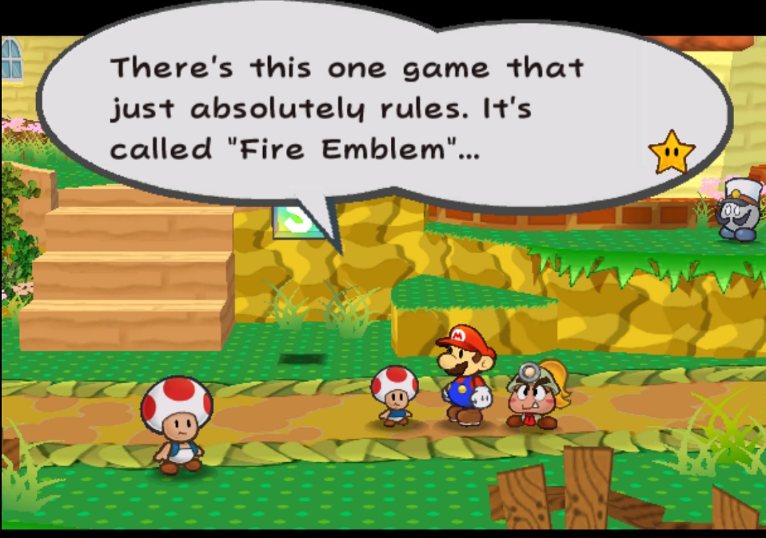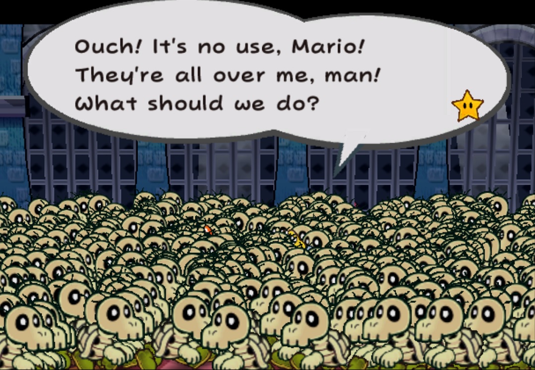 Paper Mario: The Thousand Year Door has a pretty entertaining story. The story is given to you in multiple parts; primarily through the view of Mario who you control the entire game. But also through the view of Princess Peach who is kidnapped and through the view of Bowser who is always one step behind Mario and finally through the eyes of the main villan, Grodus. The scenes with Peach, Bowser and Grodus are like palette cleansers between each of the chapters of the game.