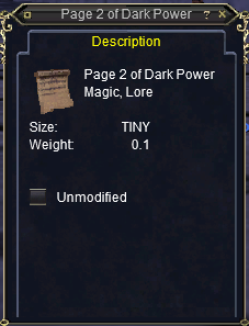 Now is the hard part! You'll need to collect 8 different pages of Dark Power from Plane of Innovation, Plane of Nightmare and Plane of Justice. Once you obtain all 8 of these place them inside of the Unfinished tome of Dark Power (as shown below) and hit combine. This will complete the book which you'll then want to turn in to Councilman Srethix back in the Plane of Knowledge.