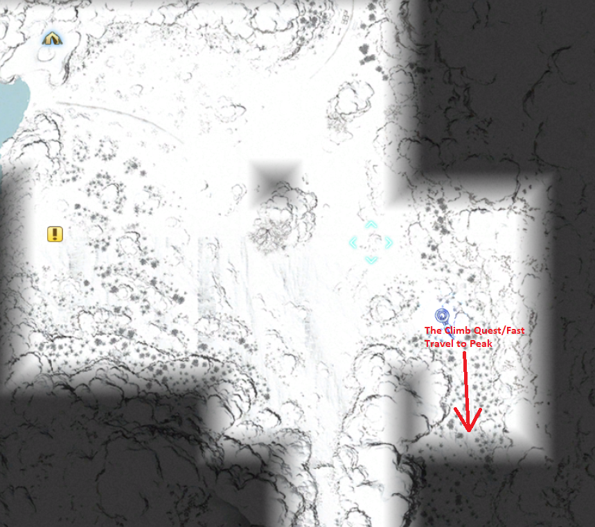 You can complete this side quest at any time and it's one of the more important ones for you to complete since it opens up a fast travel path to the peak of the mountain. All you have to do is follow the some-what hidden path into the mountains (as shown in the screen shots above) and you'll be teleported to the peak.