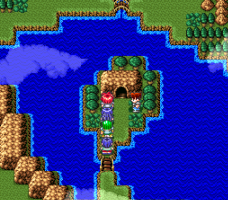 When the fight is over there will be more dialogue, after which you'll have a new task - find a boat! Exit Treck and travel northwest along the coast until you find a set of stairs that go down. There are a few treasures in here but the best one contains a Daze Ring. Keep going west after finding the Daze Ring and you'll find the path that takes you to an exit. When you're back on the World Map go south to find the boat.